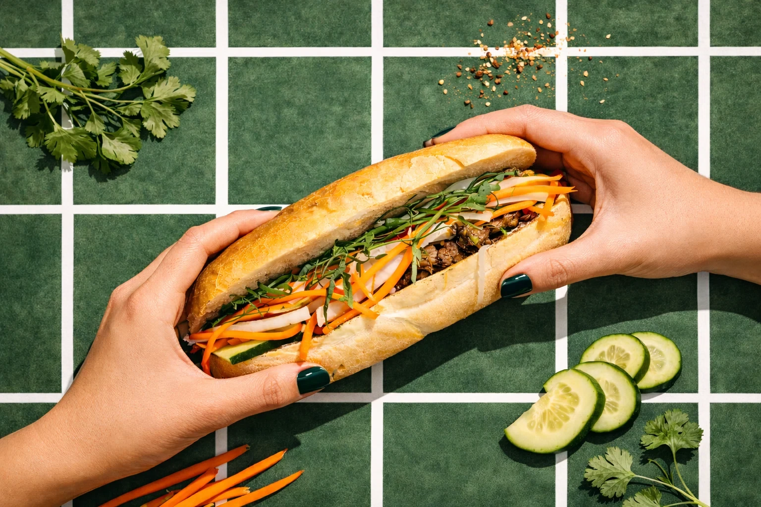 Unser Bánh Mì – vietnamesisch für Brot – wird täglich frisch gebacken und bildet die Grundlage für jedes unserer Sandwiches.